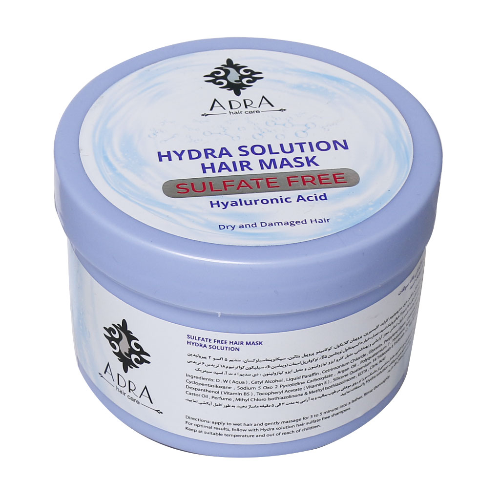 ماسک مو هیالورونیک اسید آدرا با خاصیت آبرسانی 24 ساعته فاقد سولفات حجم 400 میلی لیتر